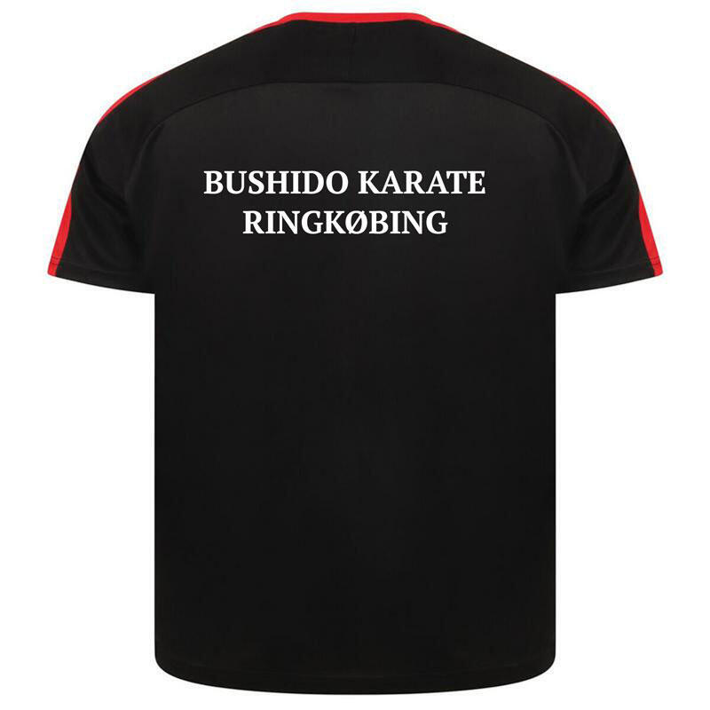Bushido Karate Voksen T-shirt - Sort med rød - Logo, navn og rygtryk