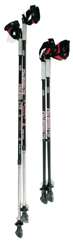Nordic Walking Telescopic stavar är gjorda av en hårt pressad aluminiumlegering som även är värmebehandlad för att öka styrkan och stabiliteten.