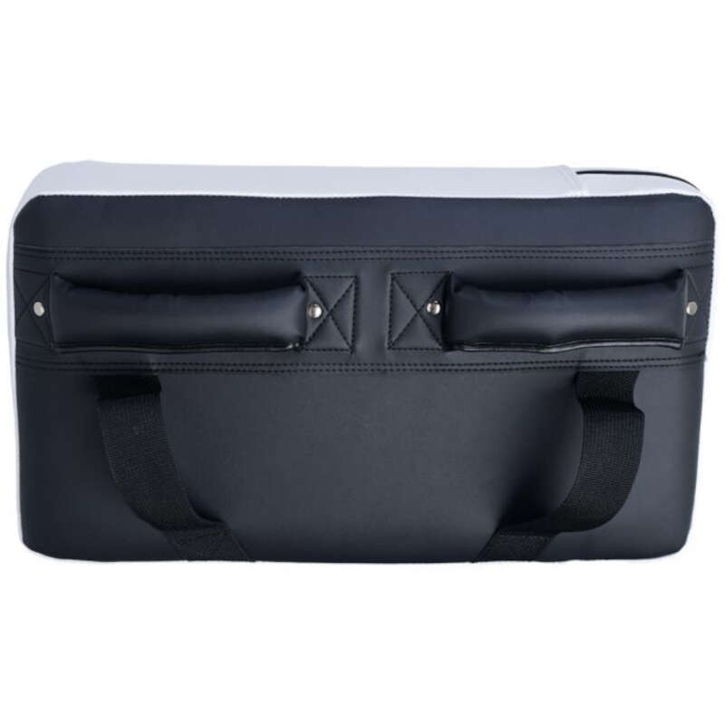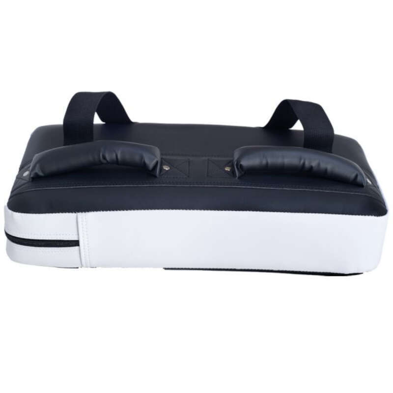Sparkepude i hvid/sort med Budo-Nord logo i guld, specielt udviklet til Taekwondo træning, og velegnet til både spark og slag.