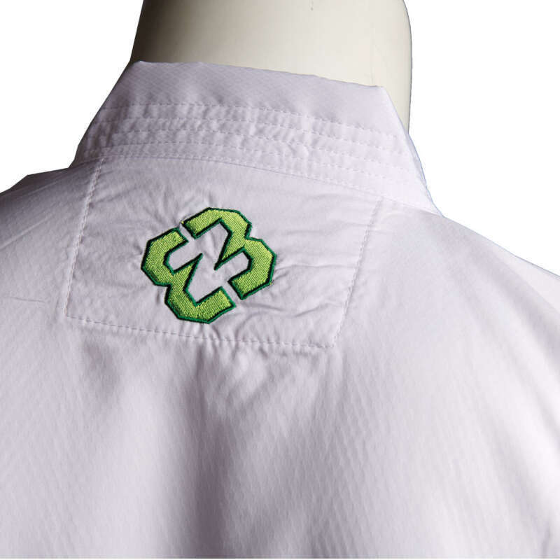 En konkurrencegi på topniveau med inspiration fra vores tidligere WKF-godkendte gier. En meget let gi, der giver dig al den bevægelsesfrihed, du kunne ønske dig. Et materiale, der føles behageligt og let, selv når du træner hårdt og sveder meget. Stoffet har en struktureret inderside, der skaber et luftlag mellem dig og uniformen og er hydrofobisk. Det betyder, at det ikke suger fugt og luftlaget øger ventilationen.