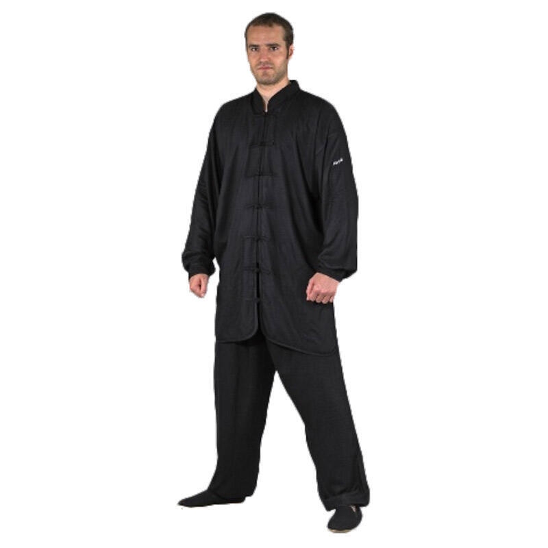 Low-priced Kung Fu dragt lavet af letvægts og flyder 100% viskose blanding, traditionelt design med 7 knapper. Funktioner elastiske manchetter plus yderligere små knapper ved enderne af ærmerne og benene. Diskret KWON broderet på øverste venstre ærme samt den øverste venstre bukseben.