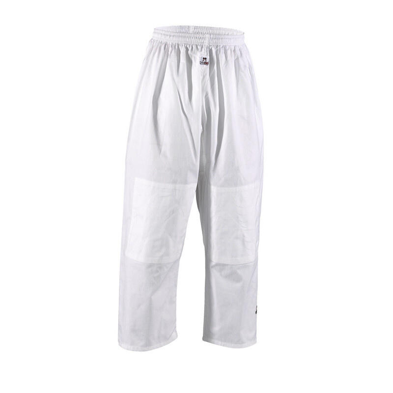 En af vores mest solgte begynder judogier på grund af dets fremragende pris-kvalitet forhold. Denne uniform har knæ- og skulderforstærkninger og er lavet af 70% bomuld / 30% polyester (420 g / m2) i den klassiske risvævning. Bukserne leveres med elastisk linning og hvidt rangbelte. Uden rygsøm.