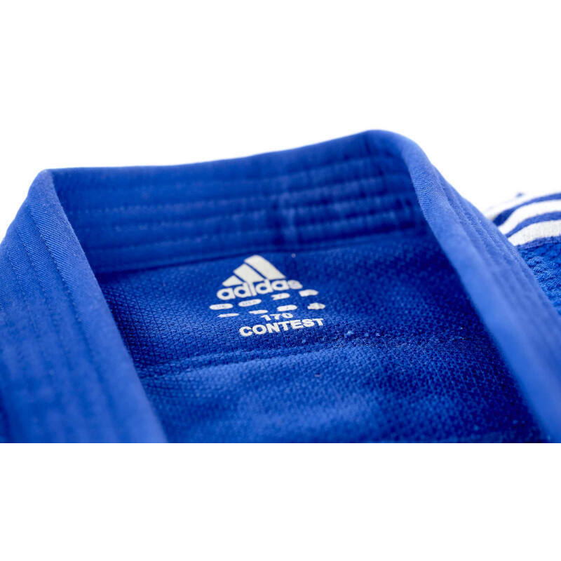 Adidas "Contest" judo-dragten er den perfekte gi til den øvede judoka, der vil have den lille smule mere. Contest er blødere end "Quest", men fastere end "Club", en perfekt judodragt til den ambitiøse judoatlet. Med 650 g/kvm har dragten en medium vægt, Gi'en er naturligvis forstærket på de afgørende områder og tåler nemt stresset fra den daglige træning samt de første konkurrencer