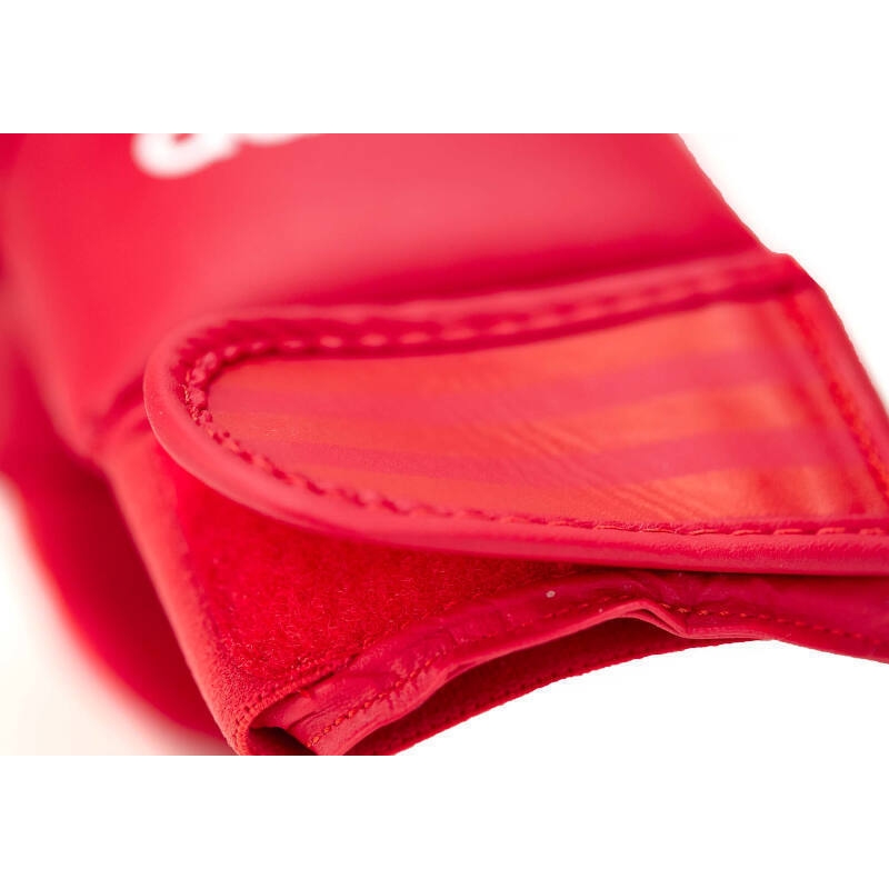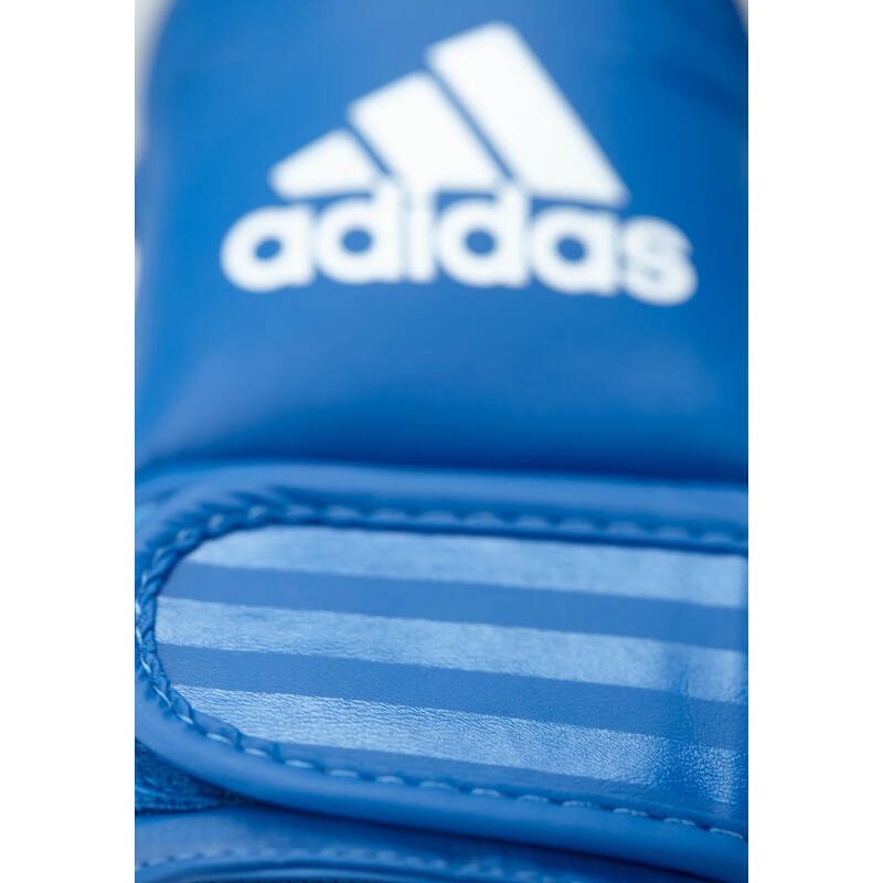 Adidas karate kamphandsken er med 2 fingerløkker. En velcrolukning på håndleddet sikrer den sidder godt fast. Godkendelsen fra WKF (World Karate Federation) garanterer, at knytnævebeskytterne kan bruges ved enhver turnering under WKF-med velcrolukning