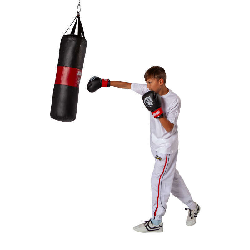 Højkvalitets boksesæk med en stabil firepunkts bælteophæng, udviklet af kampsportsspecialister. Ydermaterialet er lavet af højkvalitets og ekstremt slidstærkt syntetisk læder. Det stødabsorberende tekstilfyld minimerer risikoen for skader under træning.