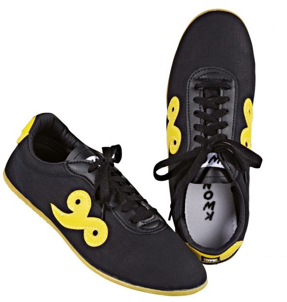 En original kinesisk Kung Fu-sko från norra Kina. Tillverkad av ett mycket slitstarkt, vävt nylonmaterial med karakteristisk gul Kung Fu-sula samt de typiska kinesiska gula designapplikationerna längs sidorna och vid hälen. Solid kvalitet till ett superpris.