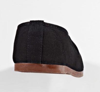 Traditionelle, lette Kung Fu hjemmesko. Overdel i canvas bomuld. Den tynde, elastiske gummisål bevarer barfodsfølelsen og giver et skridsikkert fodfæste. Må kun bruges som indendørssko.