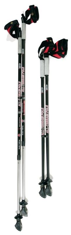 Nordic Walking Teleskopstave er fremstillet af en hårdt-presset aluminiumslegering som endvidere er varmebehandlet for at øge styrken og stabiliteten.