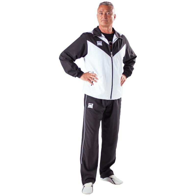 Denna funktionella träningsoverall har ett smalt snitt i modern design. Ett speciellt lätt yttermaterial i 100 % polyester och premium meshfoder säkerställer en hög och andningsbar komfort. Jackan har 2 fickor med dragkedja, elastisk mudd och jackans nederkant kan justeras med ett elastiskt dragsko. Byxan kommer med 2 praktiska dragkedjefickor och dragkedjor i nederkant.